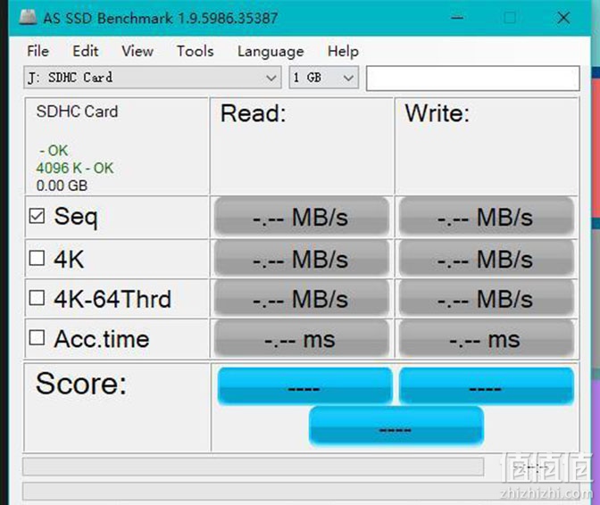 ▼换到X799自带的读卡器,使用AS SSD看不到容量了,但是依然显示两个OK