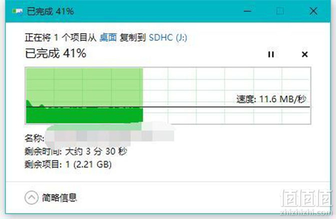 ▼实际读写测试,SD卡的文件系统是FAT32,大文件测试选用一个3.75GB的文件,应该没有问题