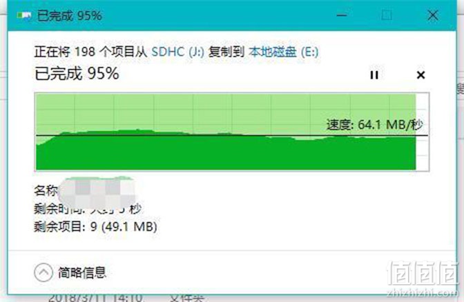 闪迪的基础入门的SD卡,只标明了80MB/s的读取速度,没有标明写入,比较不良心。这张SD卡有C10标志,实测持续写入速度在11MB/s,死卡着C10的下限,更不良心。