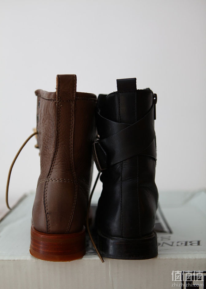 首先上两款靴子后跟弧线的对比图片。其实ash这款靴子要更加秀气一些,新靴子后边更贴合根部,弧线更加优美,虽然这款靴子颜值很高,但是舒适性一般,这个后跟处定型很硬,亲肤性很差,穿了一天,脚后跟就磨吐鲁皮了。后来去鞋店做的软化,和最一开始新鞋的样子完全不一样了,现在穿着很舒服。而Frye,完全没有这个问题,穿起来很舒服。