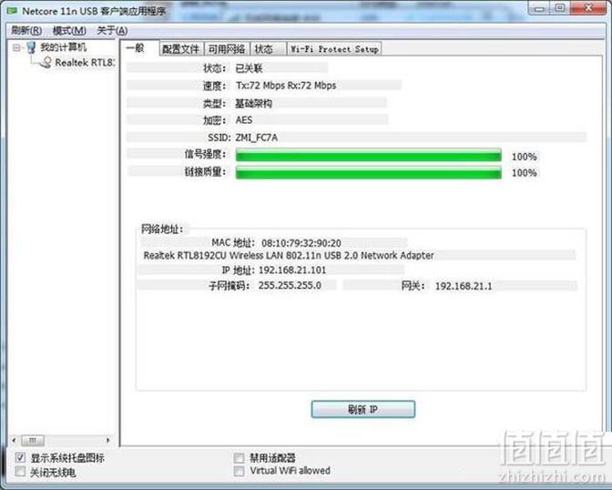 PC端使用的是300M无线网卡,室内连接信号强度和信号质量还不错。