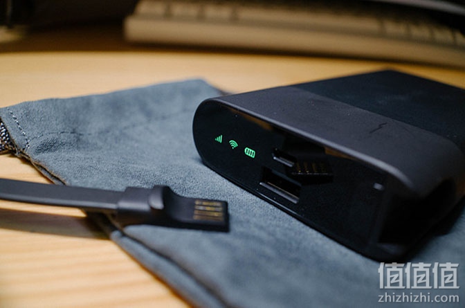 开箱之后除了路由器/移动电源本体,还附赠了一个收纳袋和一根取卡针,袋子手感比较不错。