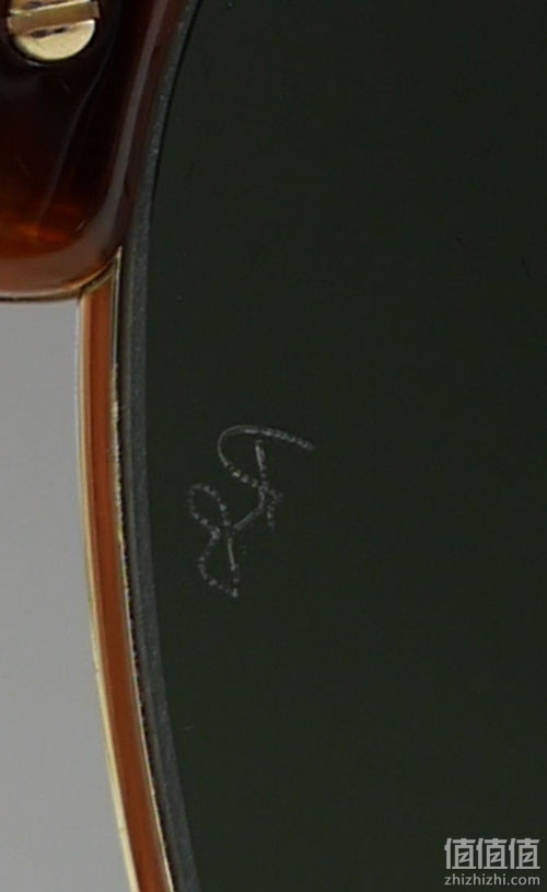 镜片左上角有雷朋的标志: