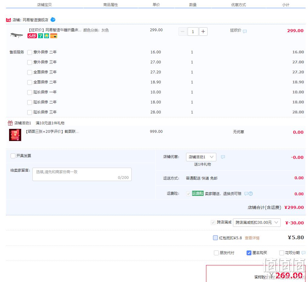 天猫目前售价299元,跨店满减30元,到手价239元包邮,近期好价。