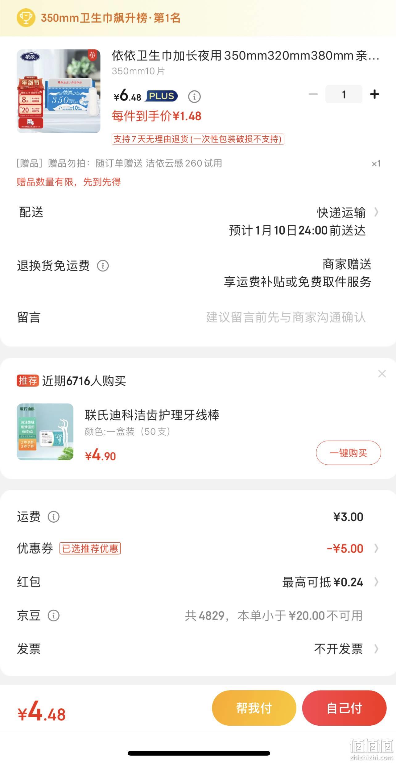 京东目前售价 7.29元,京东plus会员价6.48元,领券中心--为你推荐--领取 6-5优惠券,下单 1件,实付低至 1.48元,近期好价值得入手。