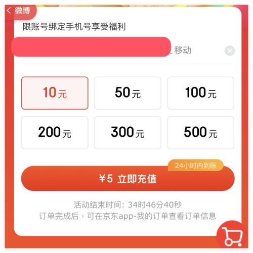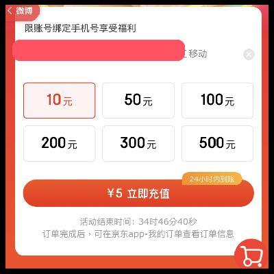 京东商城 领券5元充值10元话费