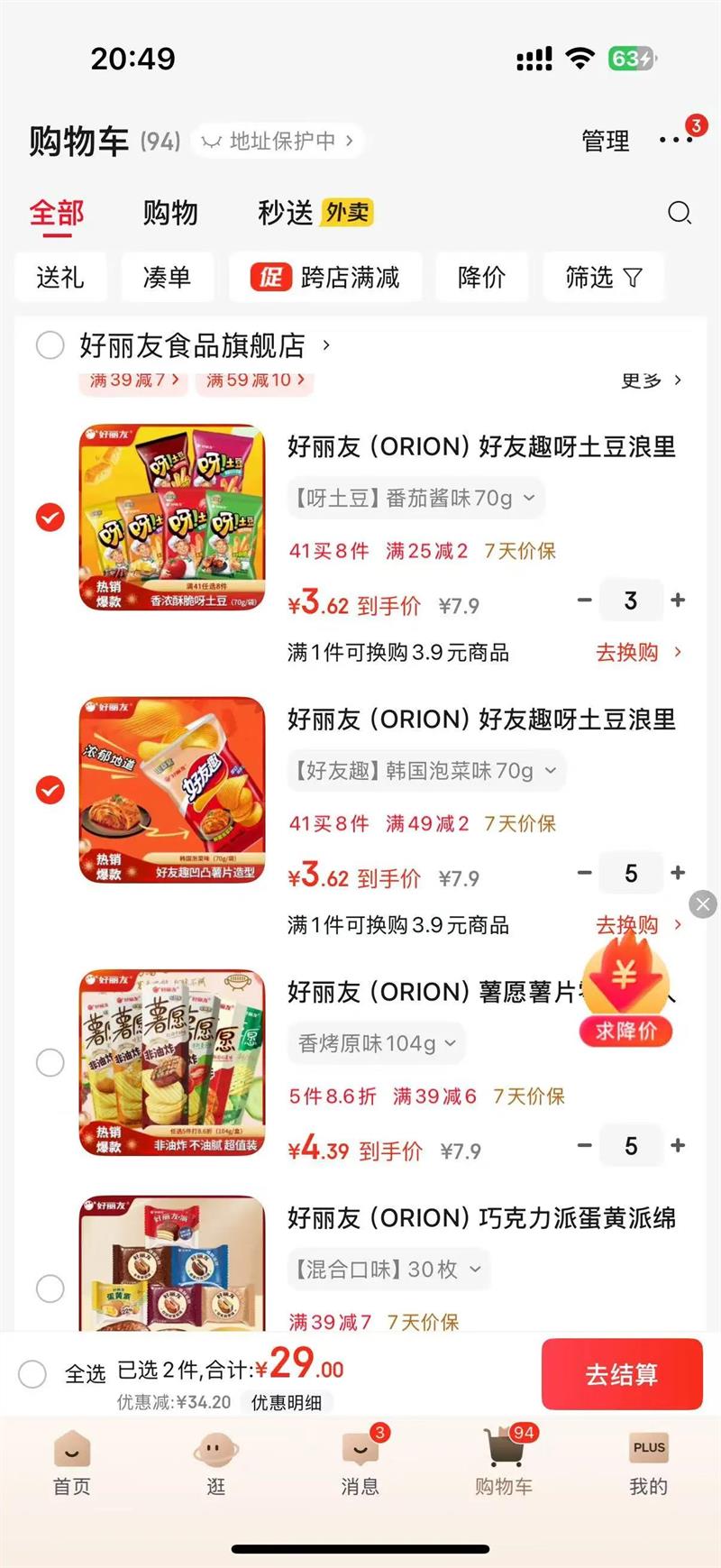 好丽友多款零食任选,好友趣70g装售价7.9元,下单8件,领券25减2元,补贴59减10元,实际到手价29元,折合一袋3.62元,口味多选,好友趣、呀!土豆,浪里个浪都可选。