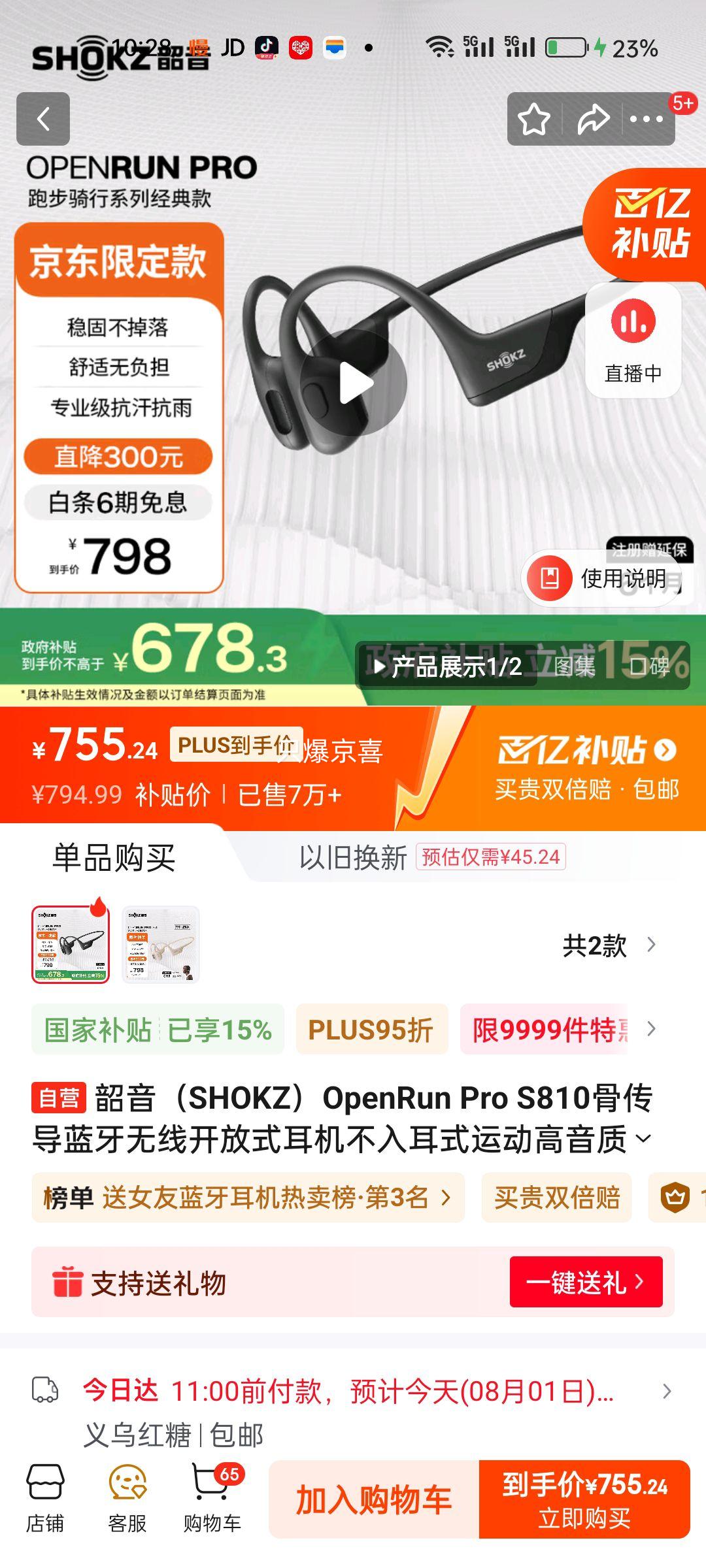 ++-- 注意:特价会过期,请早点下单。要是您查看京东自营详情网页显示标价还是原价,那可能就是活动价停止. --++全新的OpenRun Pro,采用ShokzTurboPitch低频增强技术,音质大幅提升,为运动用户带来更优秀的聆听体验。采用人体工程学原理,更好地分配了重量分布,搭配高回弹性钛合金及亲肤硅胶材质,佩戴舒适度再升级。OpenRun Pro还进一步提升了续航能力,10小时续航,支持10天超长待机。新增快充功能,充电5分钟即可使用90分钟。 舒适无负担训练更畅快,开放双耳,避免运动流汗时耳朵酸胀肿痛。耳道时刻清爽,亲肤硅胶包裹轻巧机身,百余次真实佩戴测试,舒适再升级。专业级别抗汗抗雨。无惧意外,肆意暴汗。全新声学技术Shokz TurboPitch立体环绕声场,饱满全频声段如临现场般震撼听感。10小时持久续航。蓝牙5.1,快速匹配移动设备数字降噪双麦克,即使嘈杂户外通话人声也清晰。