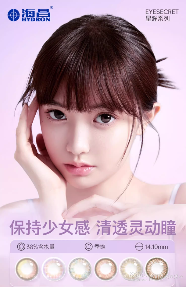 星眸系列是海昌旗下的口碑产品,目前2片装某猫商城海昌官方旗舰店售价¥100,可使用¥300-261优惠券,任选下单3件到手6片,实付¥39包邮,月抛、半年抛同价可选,多度数可选,买2副赠镜盒。 ++-- 值值值提醒您:折扣会过期,请赶紧下订单。如您点到天猫活动网页显示标价变化,可能就是好价格已过有效期了 --++ Hydron 海昌 星眸彩色隐形眼镜,含水量38%,直径14.1mm,让眼部更加舒适,视野无遮挡,成像更清晰。三明治夹层设计,不同于一般美瞳在表层染色的做法,而是将彩色染色层置于镜片夹层之中,有效的的将颜色与眼睛隔离开,健康更安全。
