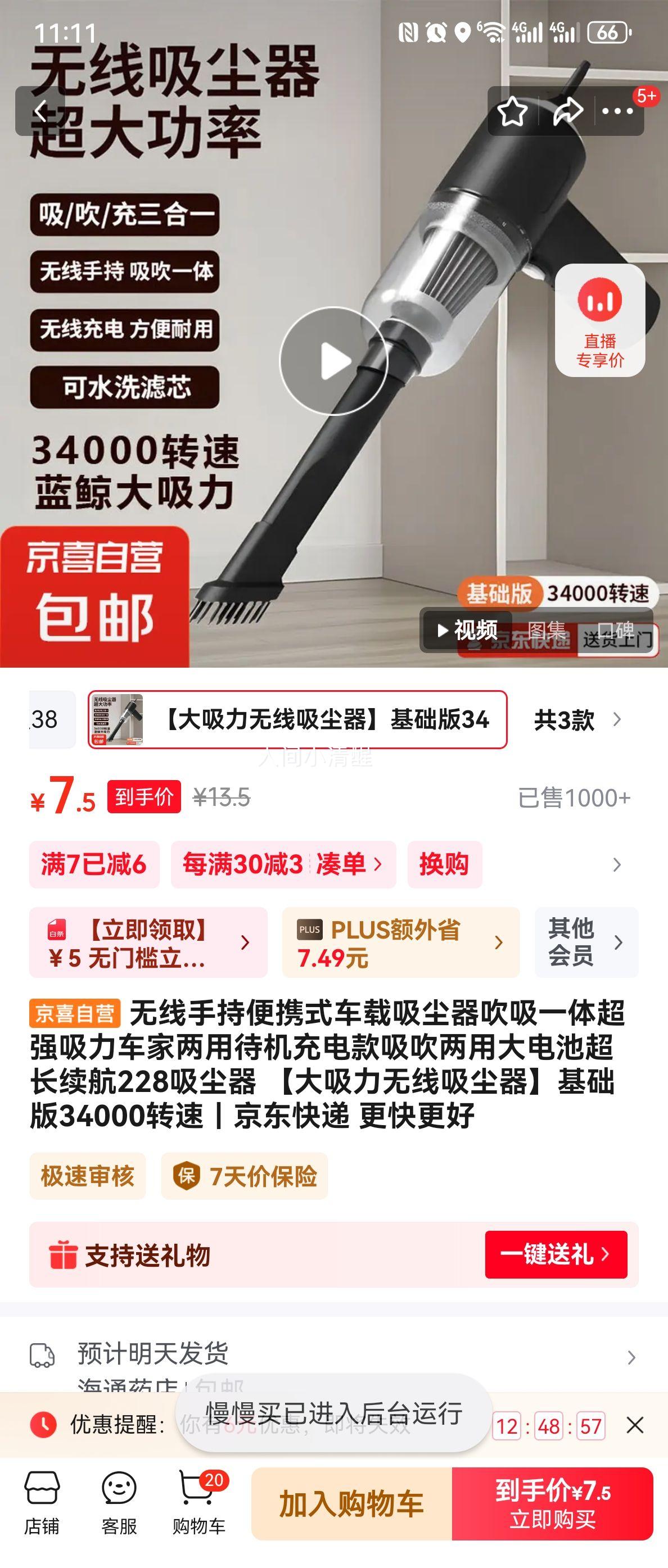 无线手持便携式车载吸尘器吹吸一体超强吸力车家两用待机充电款吸吹两用大电池超长续航228吸尘器 【大吸力无线吸尘器】基础版34000转速