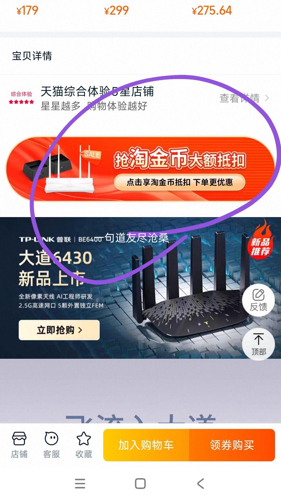 下拉详情页进入淘金币抵扣,【若有天降礼金、淘金币抵扣价格更低】