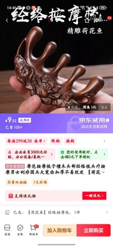 摩范按摩梳子檀木 【荷花鱼】经络按摩梳