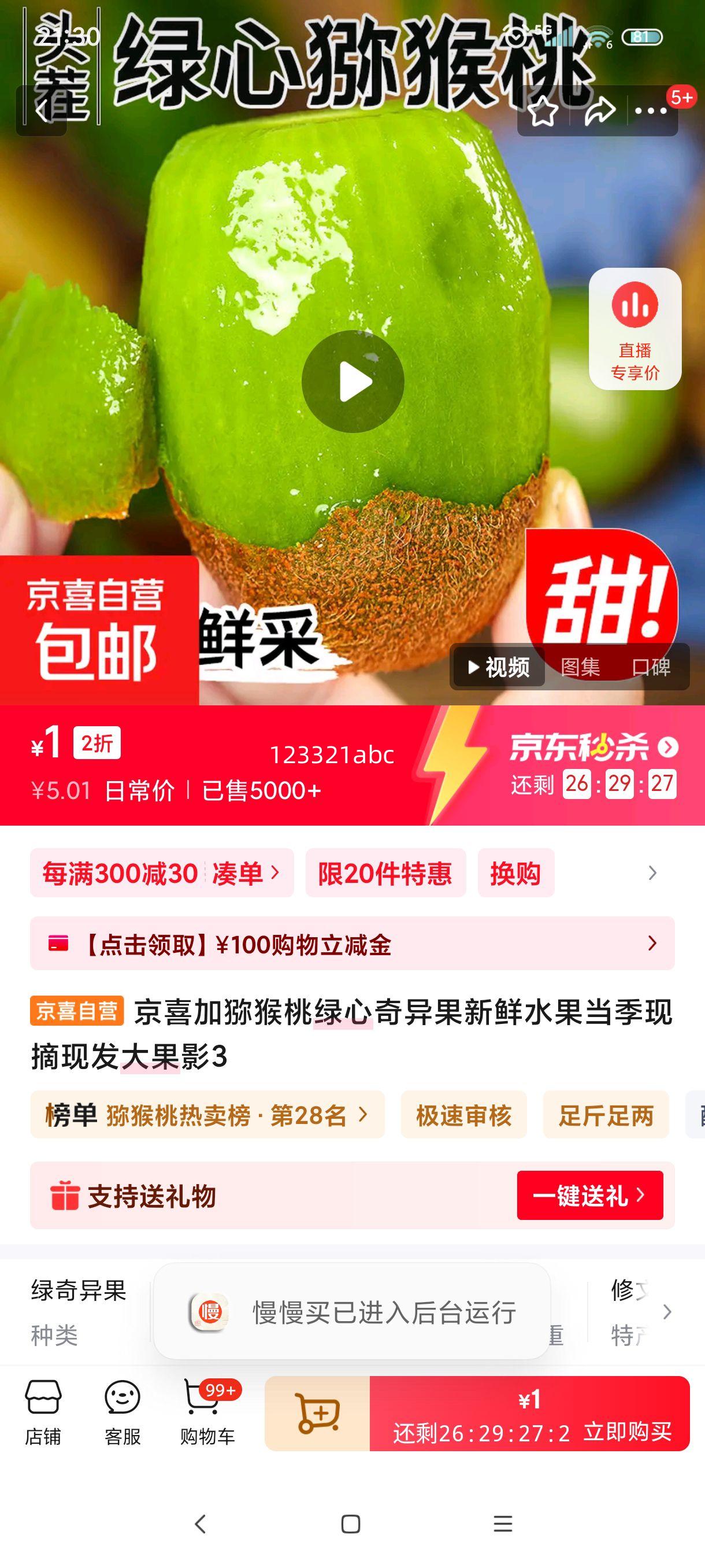 京喜加猕猴桃绿心奇异果新鲜水果当季现摘现发大果影3 2枚尝鲜70-90g