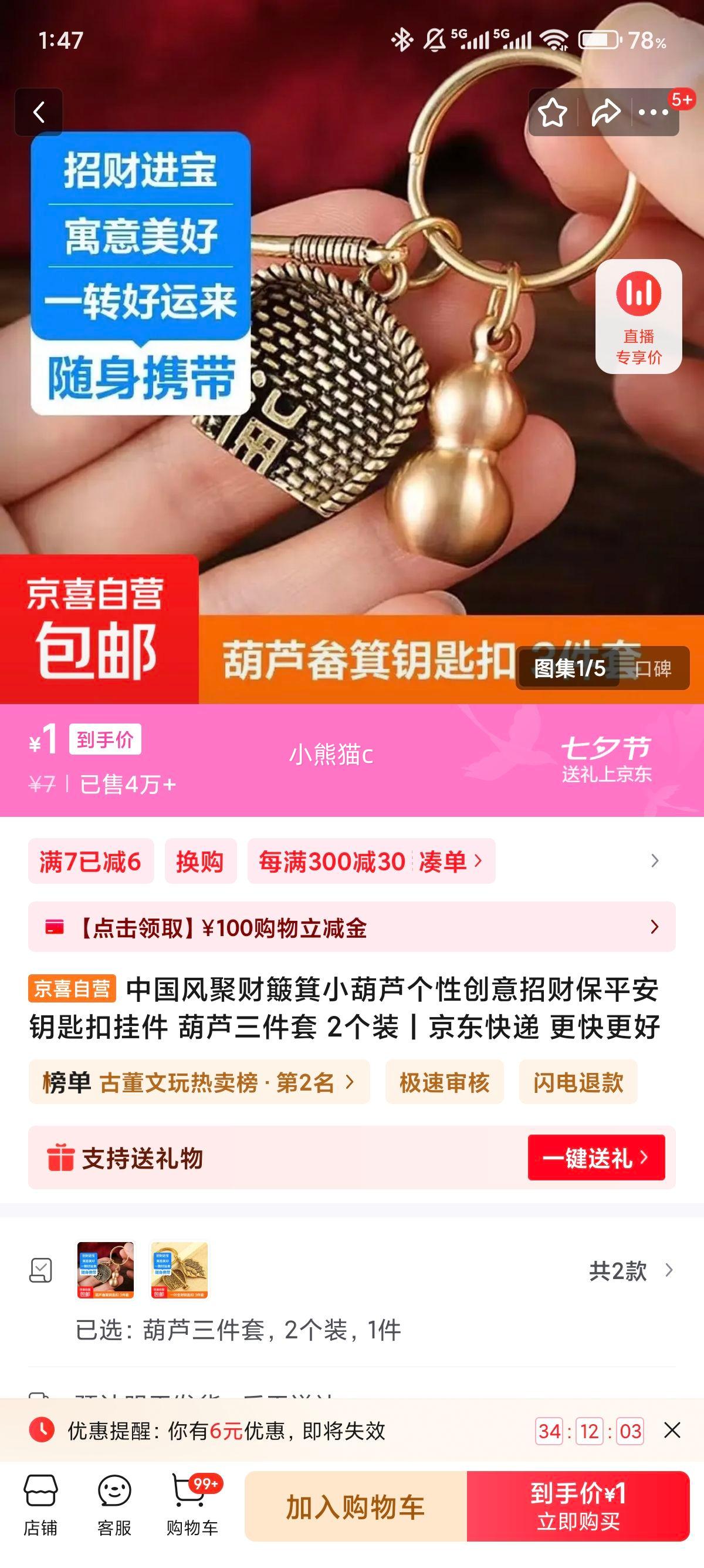 黄铜钥匙扣挂件 黄铜知了+如意编织绳1.35元京东商城 4 小时前