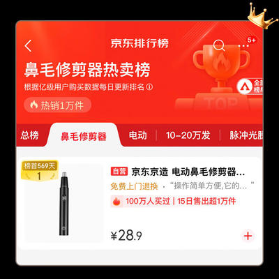 京东京造会员日国庆狂欢,88积分+22.9元兑换电动鼻毛修剪器,限时速抢!