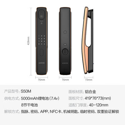 首款指静脉识别的猫眼智能锁,全自动锁体,直插式C级锁芯更安全。