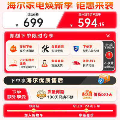 京东此款目前活动售价699元,下单领取200打9折优惠券,参与15%起减104.85元优惠活动,下单1件,实付低至534.73元。