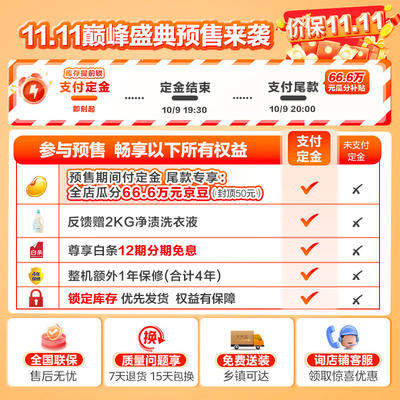 京东此款目前活动售价2499元,下单领取满2000减200元优惠券,参与1500-500优惠券,政府补贴20%优惠活动,下单1件,实付低至1479.2元。下单可参与京豆瓜分活动,50元封顶,送plus会员季卡+洗衣液,喜欢的值友可以关注~