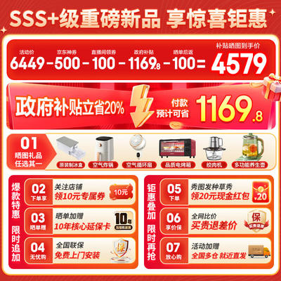 京东商城9号20点双11开门红活动价7649,下单立减1200,领直播券100元券,叠加9号晚8点500平台神券,到手5849,国家补贴在省20%,到手4679.2;晒图种草秀再返100元红包,赠品折现100元,到手低至4479.2元
