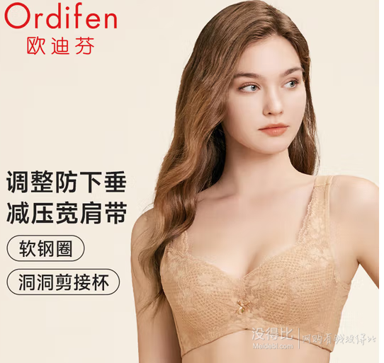 大牌子品控还是很可靠的,平时不知名普通文胸也要好几十一件!目前某东欧迪芬奥特莱斯旗舰店售价159元,参与满318元减120元优惠活动,领取满300减149元优惠券,下单2件,实付低至49元包邮,折24.5元/件。 Ordifen 欧迪芬 防下垂调整型蕾丝大胸文胸 ,货号:XB3319/XB3345,经典洞洞剪接杯,大胸调整, 美化胸型,三片式力学裁剪,让胸型显圆润立体。软钢圈,聚拢有型。2MM薄杯,更贴胸,透气亲肤,立体饱满不空杯。一条曲型+双直软胶骨,稳定侧收副乳。 ++-- 注意事项 - 好价格会失效, 请迅速买之。如果您点到京东商品网址显示价格还是原价, 说明好价已过有效期了. --++