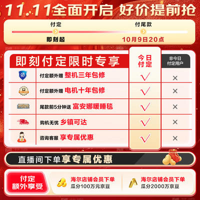 备注:0点,10点,12点,15点,16点,20点,22点,以上整点后5分钟内,直播间支付定金,尾款满3000元返199元京豆。