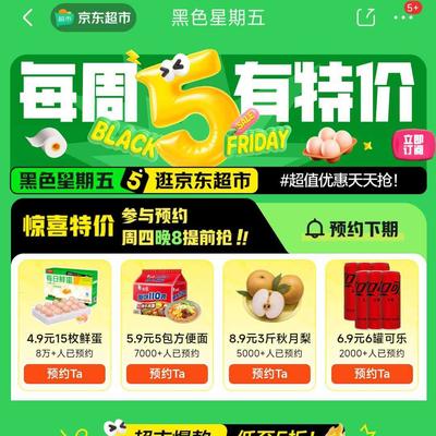 预约抢购:周四晚8点可提前抢“惊喜特价”商品(如4.9元15枚鲜蛋、5.9元5包泡面等,多款商品预约量超万次),支持“预约下期”锁定后续福利;