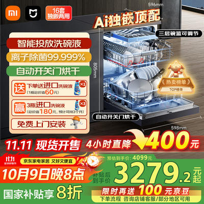 支持洗碗液自动投放和烘干后自动关门,搭载BLDC电机,洗烘效果都很出色