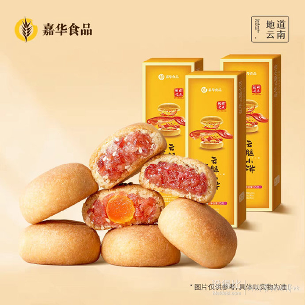 嘉华经典产品!玫瑰饼满口花香,云腿小饼一肚子的宣威火腿!层层酥皮包裹玫瑰花瓣,宛如花朵口中绽放!目前某猫商城嘉华食品旗舰店25g*9枚*3盒售价¥32,下单立减叠加领取¥10优惠券,APP端下单首先加购,再打开淘宝APP首页-淘金币(找不到就搜索“淘金币”),进入淘金币活动页面-我的足迹-前排找到商品点进去,淘金币可抵1.19元,实付¥18.71包邮。 嘉华味道,唤醒家记忆,嘉华制饼32年,只为给你自家人吃的好月饼。精制云腿小饼,选用云南火腿切丁, 与蜂蜜、糖、熟面拌匀作为馅心, 包入猪油、面粉等制成的面皮中, 全饼用中火慢慢烘烤, 直到颜色金黄; 饼皮酥、松、香,极具云南特色。 ++-- 温馨提示 - 优惠价会逾期, 请尽快去买。若您点击天猫商家页面看见价格还是原价,可能就是特价停止. --++