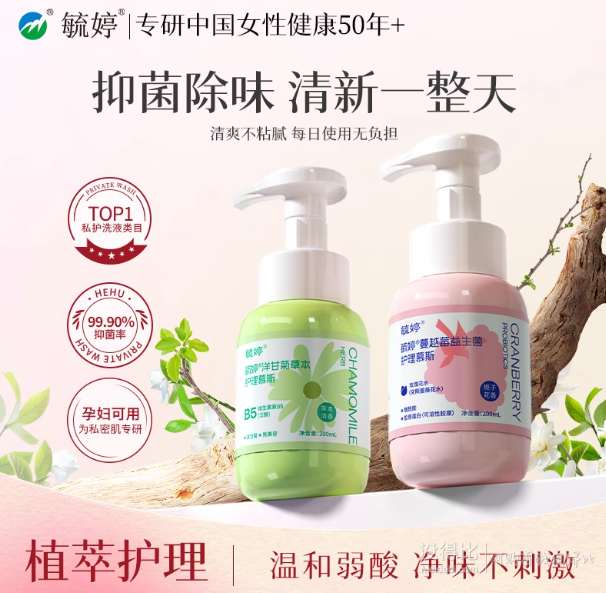适用于女性私密肌肤清洁护理,多重抗敏专利植萃成份,三重抑制无刺激,99.9%抑菌率,维稳私密微生态,给予私密肌原生般呵护。