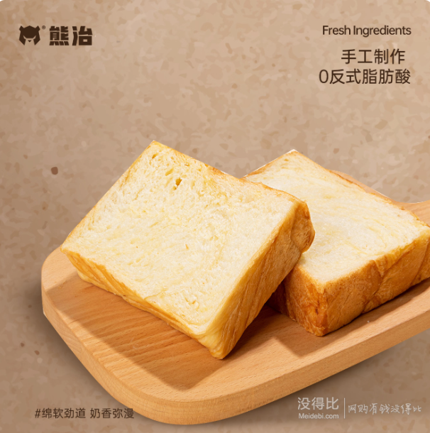 厚!厚!厚!添加动物黄油的厚切软吐司,口感扎实超满足。目前某猫商城熊治旗舰店售价¥26.9,可使用¥7优惠券,商品页面右上角点开“…”-最下面一行选择“淘金币”打开进入-中间“我的足迹”-找到该商品后下单淘金币抵扣¥1.26,实付¥18.64包邮。 熊治 手作厚切黄油牛乳吐司,每片超厚切,口感扎实超满足,饱腹感UPUP!添加进口新西兰乳粉,以及4%全脂牛乳,融入8%安佳黄油,奶香味巨浓,入口醇厚,口感绵润不干噎,层层松软柔韧。 ++-- 温馨提醒 - 打折会终止, 请尽快下手。假若您访问天猫商品链接显示标价还是原价, 说明特价失效了。 --++
