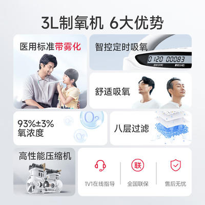 93%浓度稳定供氧,吸氧雾化一机两用