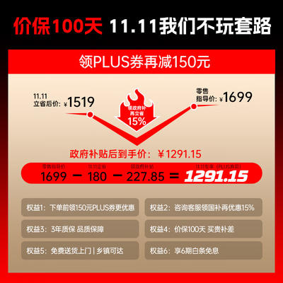 可用券及活动:15%起减227.85元、满999元减180元、plus会员券下单立减、plus会员下单立减、大促神券满0.01-100