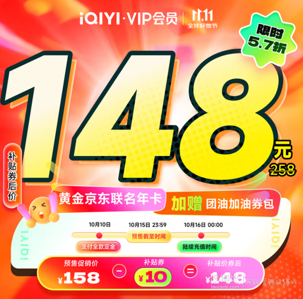 支持手机、平板、电脑!目前某东售价158元,可领10元优惠券,输入手机号验证后实付148元,含爱奇艺 VIP黄金会员年卡12个月+送某东Plus会员年卡!按PLUS会员49元/年算,爱奇艺年卡大约100元到手。 注意:下单后把自动续费关闭,否则到期后会按238元/年自动续费! ++-- 购买提示: 降价会过期, 请加紧买之。如您点击京东商家网页看见价格已变, 那可能就是促销已过有效期。 --++
