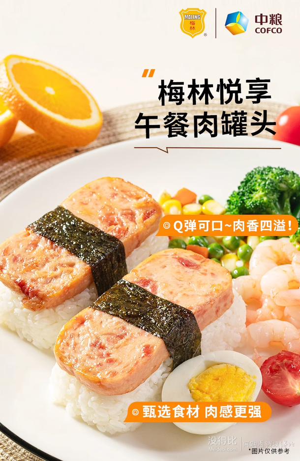 打火锅或者烤肉绝赞!目前某猫商城梅林旗舰店售价¥31.3,领取¥93-69优惠券,APP端商品详情页右上角点“...”-淘金币-足迹加抵-加购物车,淘金币可抵扣¥0.8,实付¥24.1包邮,约合¥8/罐,悦享/优享两款同价。 中粮 梅林 午餐肉罐头,大块肉粒,肉质细嫩,恰到好处的好感,成就了多年怀旧的味道,同时也是米饭的好搭档,热腾腾的米饭搭配上经典老味道的火腿肉午餐,童年的回忆满满。 罐头大肉粒看到口味十足,口齿留香,肉眼可见的肉丝,肉味十足,马口罐装保持口感,依旧的包装。 ++-- 请您注意: 特价会过期,请尽快下单。若您点到天猫商家链接看到价格改变, 那可能就是折扣价失效。 --++