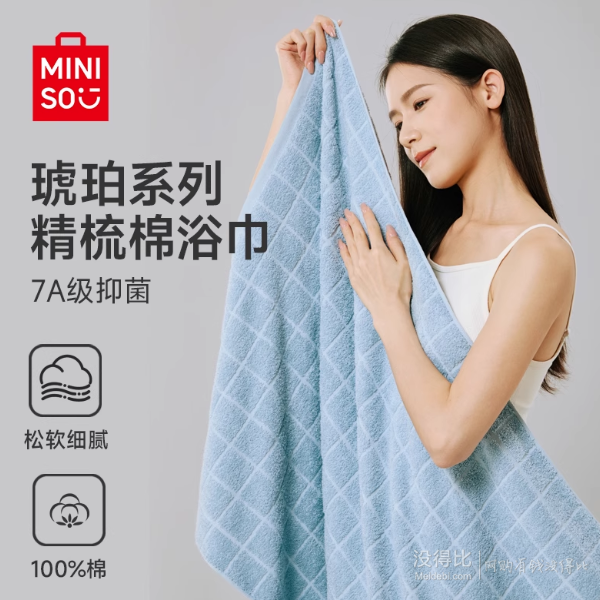 目前某猫商城miniso名创优品旗舰店售价¥29.9,超级立减¥4,领取¥6优惠券,APP端商品详情页右上角点“...”-淘金币-足迹加抵-加购物车,淘金币可抵扣¥1.19,实付¥18.71包邮,多色可选。 精选100%精梳棉,云柔菠萝格,柔软亲肤,多孔隙结构,2.2s瞬吸水,7A级抑菌,pH弱酸性,不刺激肌肤,136×70cm超大尺寸,290g克重。 ++-- 温馨提示 * 活动会过期,请马上买之。假若您访问某宝商家链接看见价格已复原,那说明特价已过期。 --++