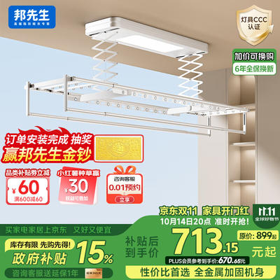 LED照明+伸缩晾干+无线遥控+支持轻抬上升~