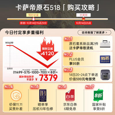 京东此款目前活动售价11599元,PLUS会员9.5折,商品页右上角直播间领取200元劵,满5000减1500元,参与满10000元减975元,国家补贴20%,入会种草送50元,下单1件,实付低至6675.24-50=6625.24元。