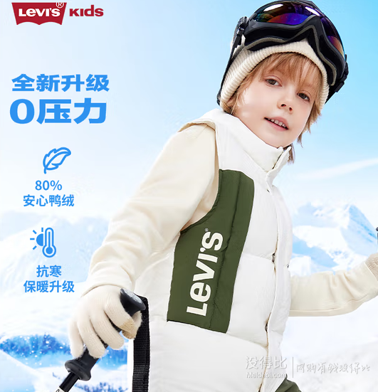 最高充绒量123g(XL码),轻薄保暖。目前某东商城Levi's童装旗舰店售价¥268,领取1件5折优惠券(5折码可以同时多款加购物车一起用,用过了可以换小号领,不限PLUS!),实付新低¥134包邮,新低价,2色多码可选。 作为牛仔裤的“鼻祖”,Levi's象征着美国野性、刚毅、叛逆与美国开拓者的精神。它历经一个半世纪,从美国流行到全世界,并成为全球各地男女老少都能接受的时装。 Levi's 李维斯 儿童轻薄羽绒马甲LV2442256GS-001,25D轻薄皱感布,拼接设计,80%白鸭绒填充,蓬松度14cm+,清洁度600+,充绒量55g~123g,轻薄保暖,防风立领设计,温暖呵护头颈部,两侧斜插口袋设计,可插手可置物。 ++-- 特别提醒 * 便宜价会完结, 请早点购买。如您点击到京东商家网址看到价格已恢复原价, 可能就是好价格完结了. --++
