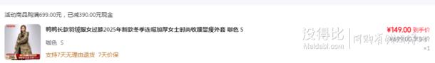 2025年秋季新款,填充90%含量白鸭绒,充绒量最高160g(L码),目前某东商城鸭鸭严选官方旗舰店售价¥699,下单立减¥390,领取¥599-10优惠券及¥299-100大促神券,Plus会员领取满1享9折优惠券,实付¥149包邮白菜价,S、M码有货。 ++-- 网购提示:活动价有时效性,请赶紧冲。如您点击到京东商品网址发现价格还是原价,那就说明好价格已失效。 --++ 以往低价¥269以上!
