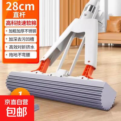 双重挤水设计,顺畅彻底,加长杆,拖地不弯腰,拖把杆长约108cm,干湿两用,一拖即净,延长棉头,贴心保护,胶棉头长于挤水板,不易伤家具。