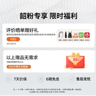 京东此款售价1098元,下单领取9折券,叠加补贴10%,下单支付889.38元,晒单不要赠品可折现50E卡,最终到手价格839.38元,多色可选,前一百名加赠按摩仪