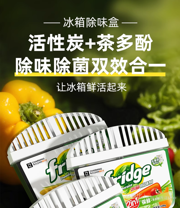 ++-- 请您注意: 活动有时效,请早点下手. 若您点到天猫活动网页显示标价已改变, 那就可能是活动完结了. --++美国百万家庭主妇选择。植物分解,双效合一!有效去除异味,清新冰箱空气。天然椰壳活性炭吸附能力更强,有效吸附分解异味。绿茶萃取茶多酚,具有较强的除菌功能。
