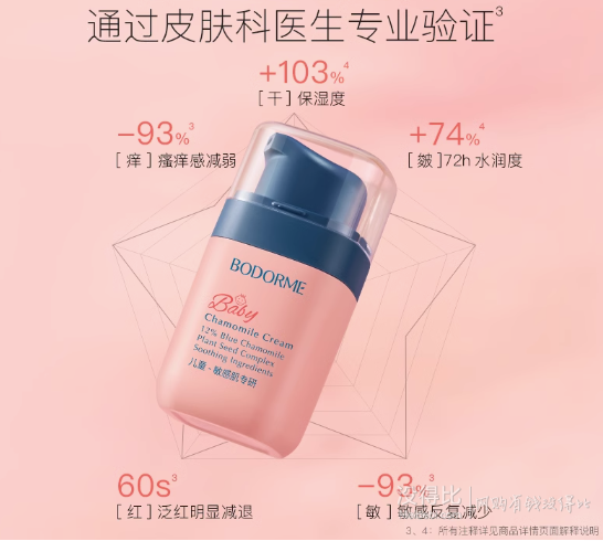 精华级面霜,线下同款在售89元,下单多送一瓶护手霜,7天鲜活采摘蓝甘菊,对过敏、湿疹、苹果脸特别好。目前某猫商城贝德美旗舰店25g单瓶售价¥49,下单立减叠加可使用¥10优惠券,领取88会员9折优惠券, APP端下单首先加购,再打开淘宝APP首页-淘金币(找不到就搜索“淘金币”),进入淘金币活动页面-我的足迹-前排找到商品点进去,淘金币可抵1.96元,实付新低¥24.34包邮。 这款Bodcrme 贝德美 蓝甘菊倍润霜,95%高天然成分比,通过皮肤科医生专业验证,儿童敏感肌专研。12%高浓度蓝甘菊精粹,7天鲜活采摘更有效,有效舒缓肌肤不适。加乘双重植物果油,汲取自然力量生长,富含多重养分,协同舒缓,构筑宝宝强韧肌肤屏障。山茶籽角鲨烷,10倍渗透力,速稳屏障。专为敏感肌宝宝研发的精华包油体系,同时兼顾精华的延展性和霜的滋润度,在肌表形成持久舒缓膜。 ++-- 购物提醒:折扣价有时效,请尽快冲. 假若您点击天猫商家页面看到价格已恢复原价,可能就是特卖终止了 --++