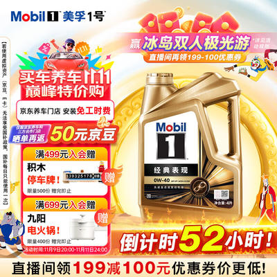美孚(Mobil)金美孚 先进全合成汽机油经典表现 0W-40 SP 1L*5209.71元(晒单返50元京豆后)京东商城 1 小时前
