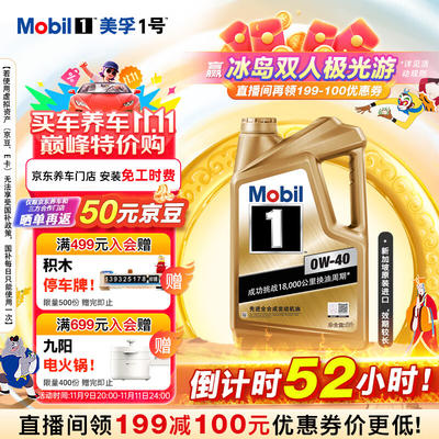 美孚(Mobil)金美孚 先进全合成汽机油经典表现 0W-40 SP 1L*5209.71元(晒单返50元京豆后)京东商城 1 小时前