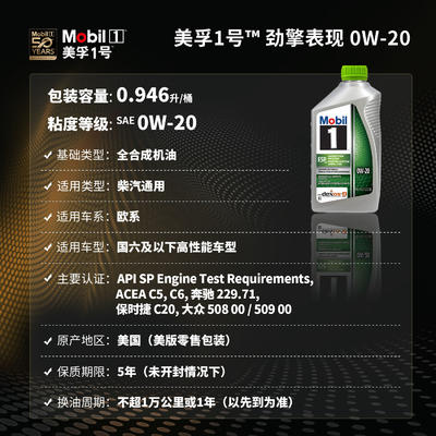 美孚(Mobil)金美孚 先进全合成汽机油经典表现 0W-40 SP 1L*5209.71元(晒单返50元京豆后)京东商城 2 小时前