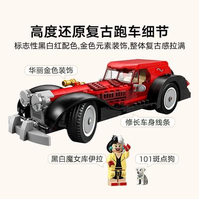 拼搭这款乐高 ǀ 迪士尼库伊拉的豪车(43277)可拼搭套装,带 9 岁以上的孩子和可以拼搭的玩具汽车粉丝体验长途冒险。套装带有一辆积木拼搭的迪士尼101 忠狗玩具车。这款经典的可拼搭汽车模型拥有可打开的车门、可拆卸的车顶和通过“备用轮胎”转向的功能,对于女孩、男孩、迪士尼反派粉丝或汽车爱好者来说,是一份很棒的创意礼物。这款假装玩具拼搭套装包括库伊拉和狗狗乐高 ǀ 迪士尼角色,可供玩乐或展示。