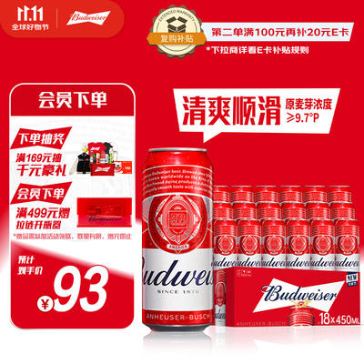 Budweiser 百威 经典醇正啤酒 450ml*40罐券后129.26元天猫 2 小时前