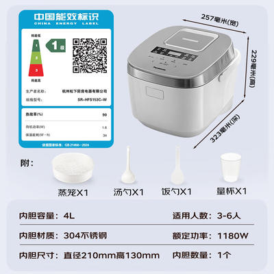 松下(Panasonic)【国家补贴20%】饭光光电饭煲0涂层IH加热家用无涂层电饭锅4-5人不锈钢胆一级能效4升SR-H15NSJ-W1619.1元 (券后省0.9,月销5000+)京东商城 2 分前