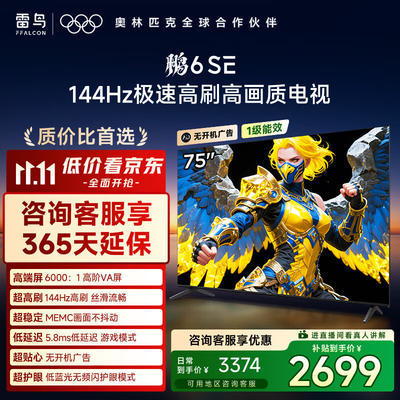国家补贴:雷鸟 FFALCON 鹤6 26款系列 75R69A 液晶电视 75英寸 4K 标准版3027.04元京东商城 10 分前